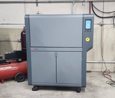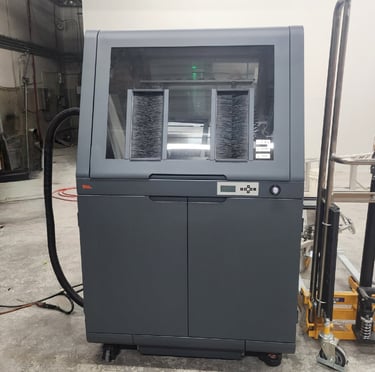 After printing, the build box containing the printed parts is placed into a crosslink oven. Crosslinking is a thermal cure process that gives printed parts in the green state additional strength before depowdering.